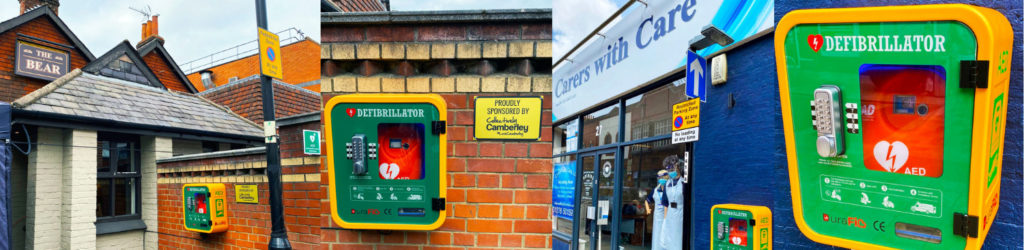 The defibrillator on High Street is sponsored by local Property Investment business Riseden Ltd and is supported by Carers With Care, Camberley.