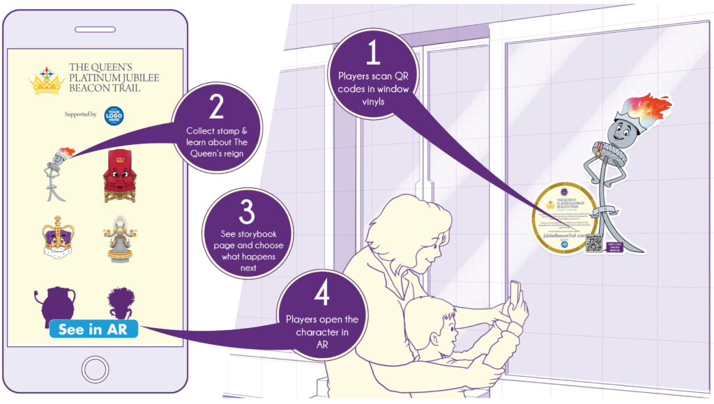 Prior to the historic celebration of the Queen’s Platinum Jubilee on 2nd June 2022 you can take part in our specially created, augmented reality trail in Camberley.