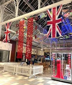 Visitors can view the powerful poppy installation, featuring all the donated poppies, a beautiful handmade poppy dress, and poppy colouring sheets created by local residents in tribute to those who served in Central Square.