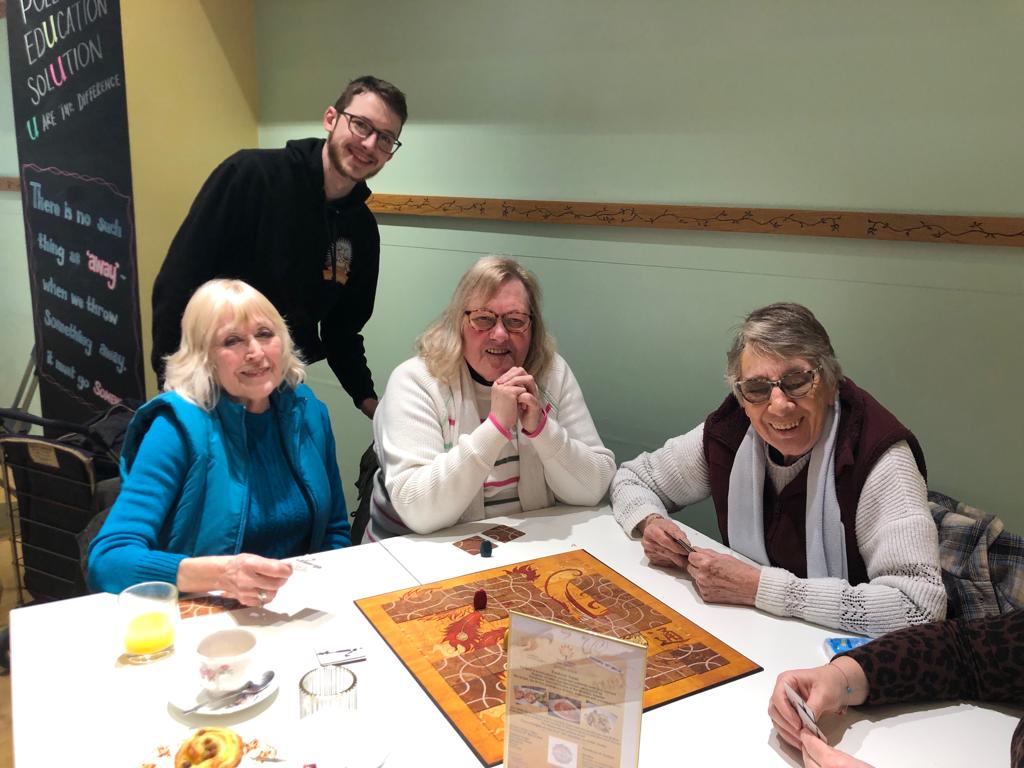 The guests from the Rainbow Café visited The Square to enjoy tea and treats alongside the wonderful music of Jen Merchant, and took the opportunity to socialise. As extra activities, the attendees also enjoyed mini massages from The Massage Company for relaxation and indulgence, and Kieran from The Square’s very own Of Dice & Men board game café assisted with a variety of fun games to get involved in.